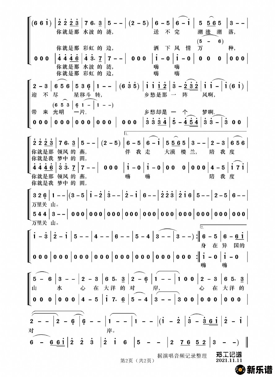 《乡愁(女声二重唱)》简谱 王爱华、王春花-郑工制谱