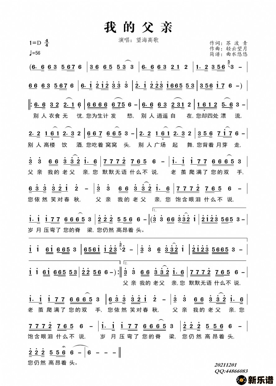 《我的父亲》简谱 望海高歌-曲水悠悠制谱