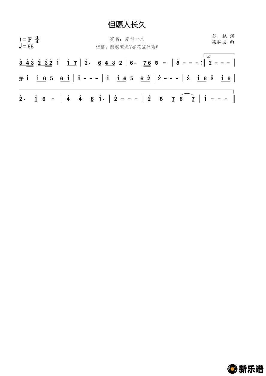 《但愿人长久》简谱 芳华十八-杏花弦外雨制谱