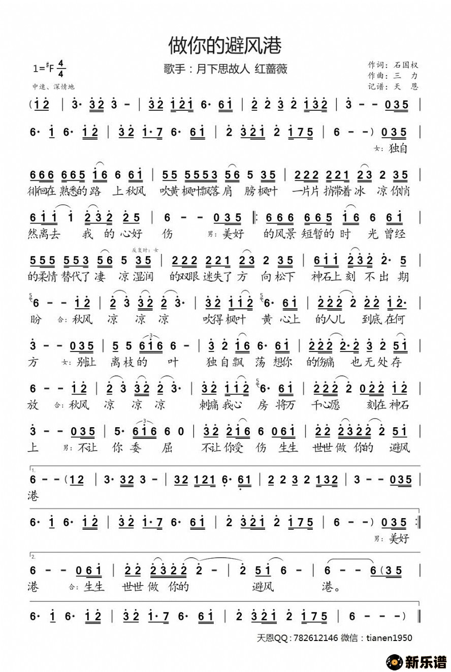 月下思故人&红蔷薇演唱的做你的避风港歌词,做你的避风港简谱.