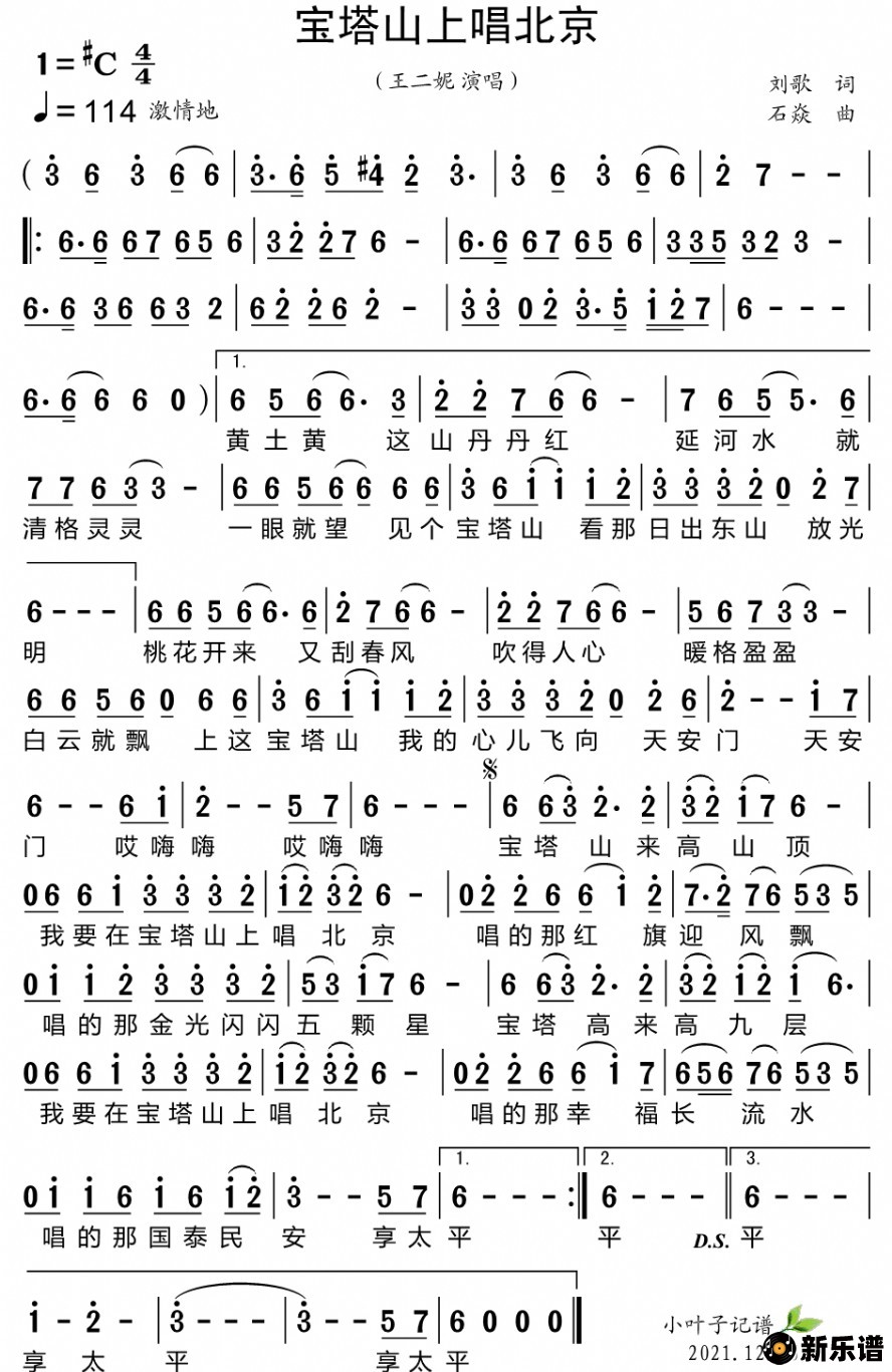 《宝塔山上唱北京》简谱 王二妮-小叶子制谱