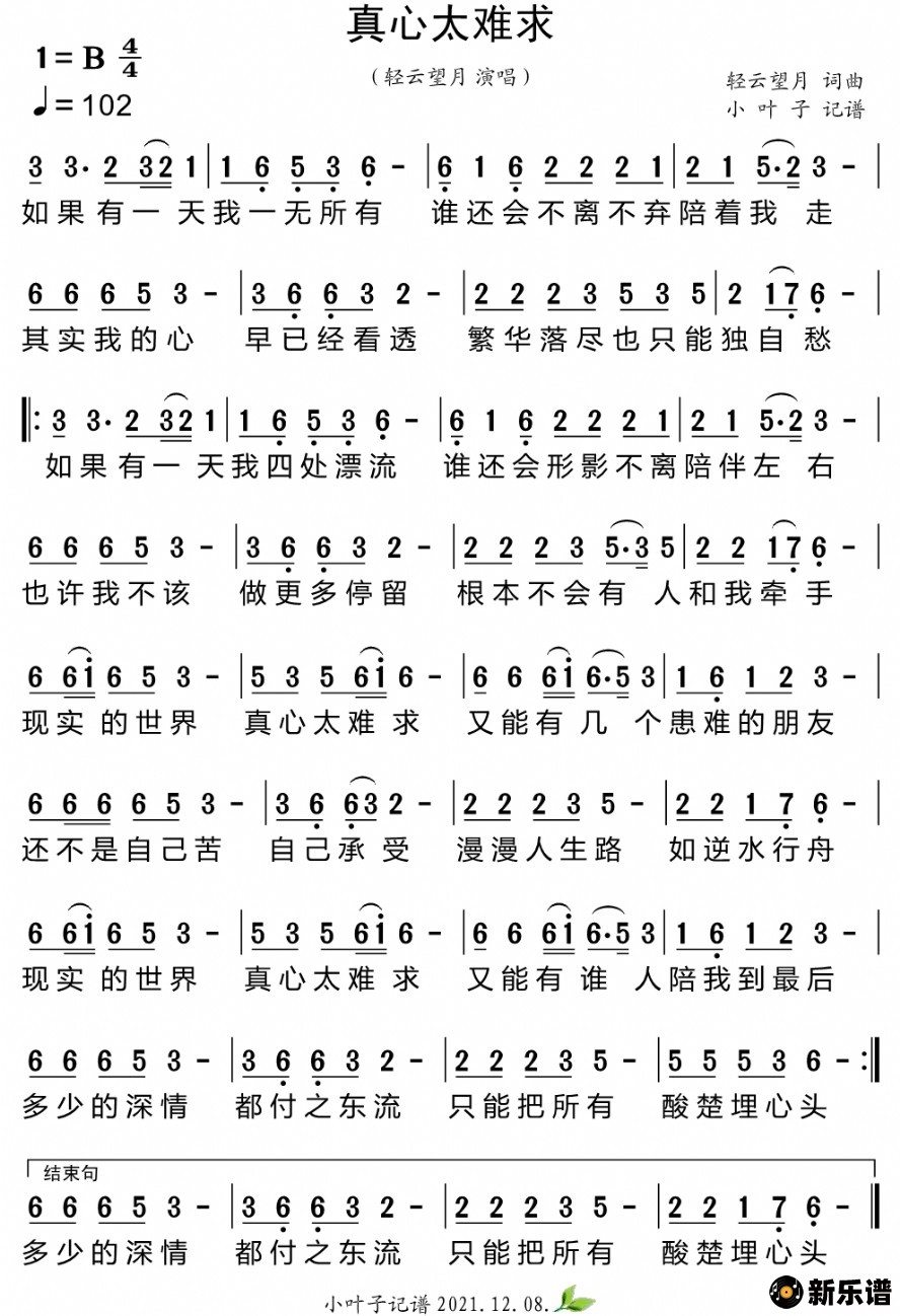 《真心太难求》简谱 轻云望月-小叶子制谱