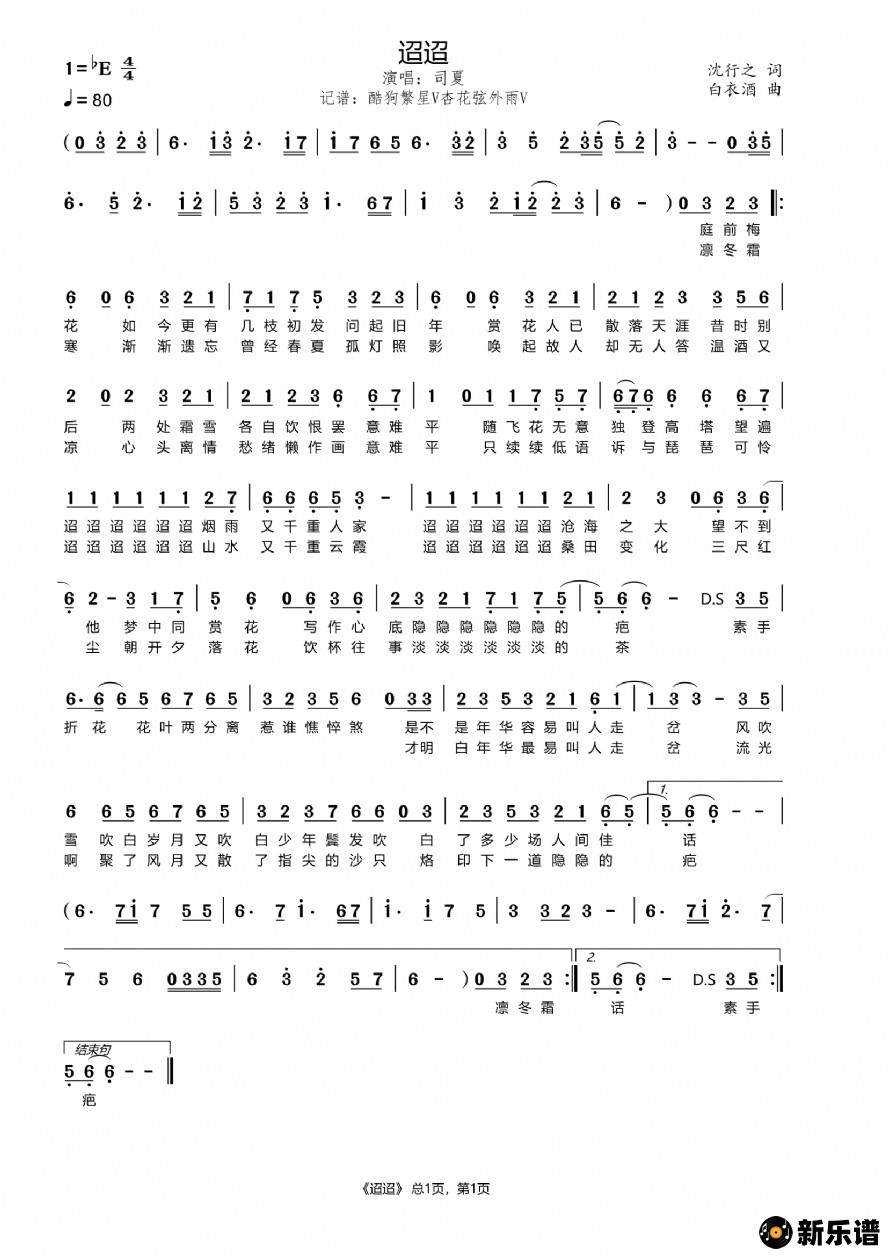 《迢迢》简谱 司夏-杏花弦外雨制谱