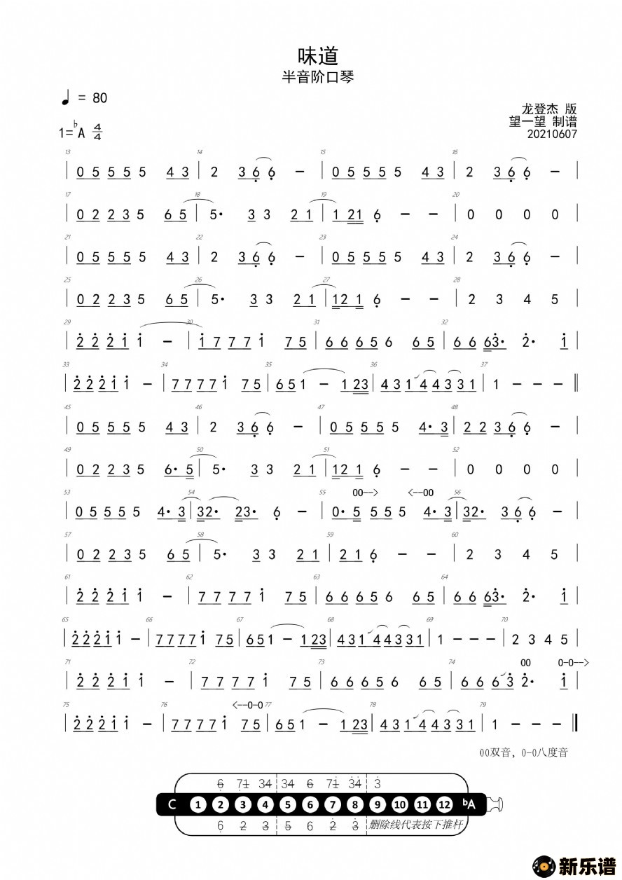 味道 ba 首调简谱/龙登杰 相关曲谱