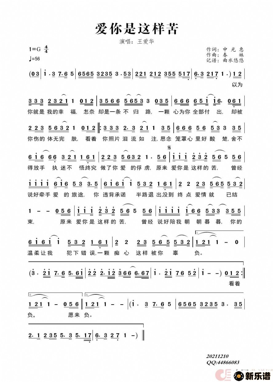 《爱你是这样苦》简谱 王爱华-曲水悠悠制谱