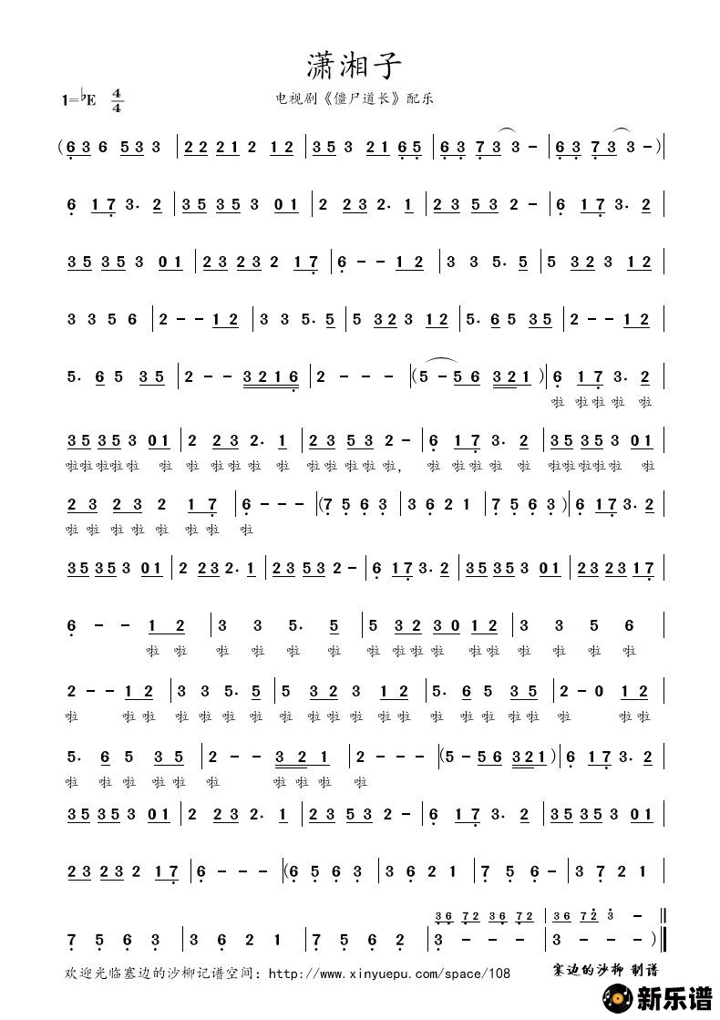 《潇湘子(电视剧《僵尸道长》配乐)》简谱 佚名-塞边的沙柳制谱