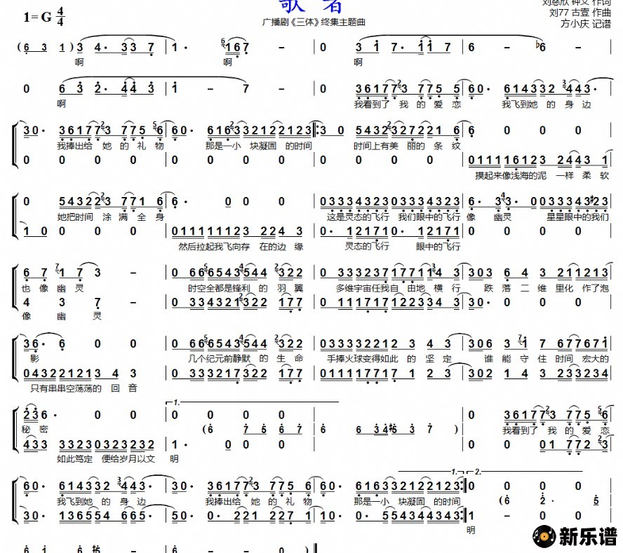 谭维维演唱的歌者(广播剧《三体》终集主题曲)歌词,歌者(广播剧《三体》终集主题曲)简谱.