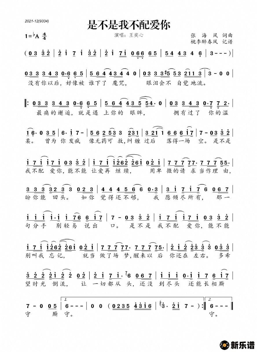 《是不是我不配爱你》简谱 王奕心-桃李醉春风制谱