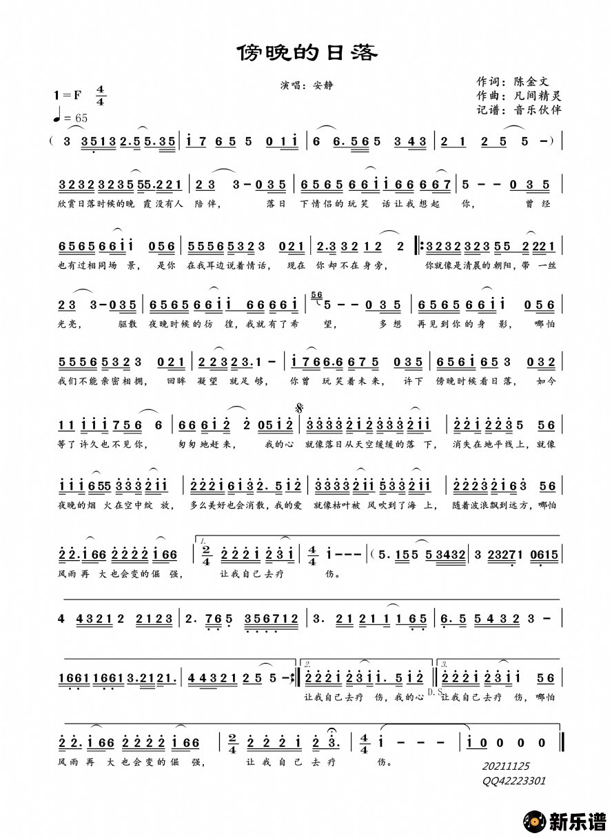 《傍晚的日落》简谱 安静-音乐伙伴制谱