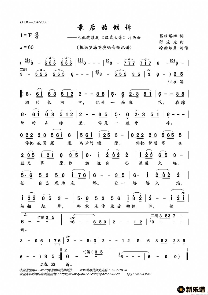 《最后的倾诉(电视连续剧《汉武大帝》片头曲)》简谱 罗海英-岭南印象制谱