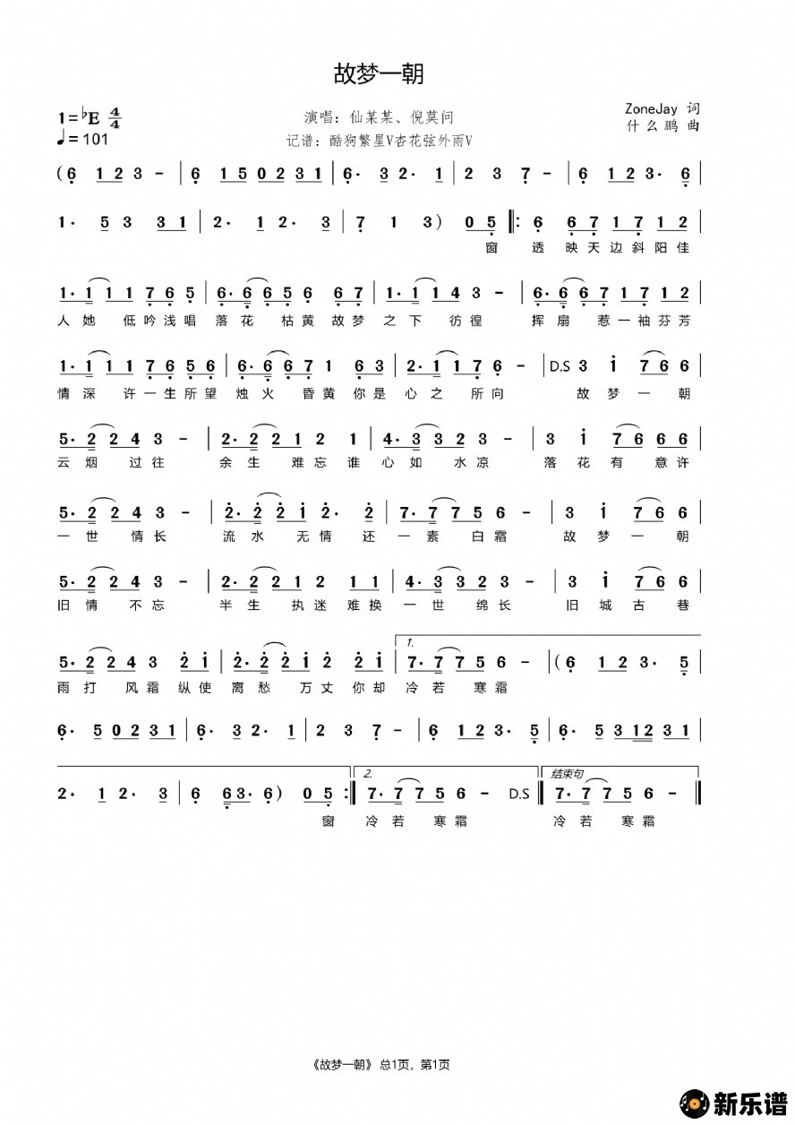 仙某某、倪莫问演唱的故梦一朝歌词,故梦一朝简谱.