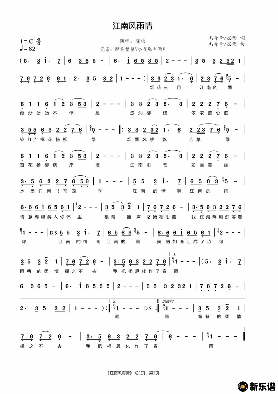 晓依演唱的江南风雨情歌词,江南风雨情简谱.