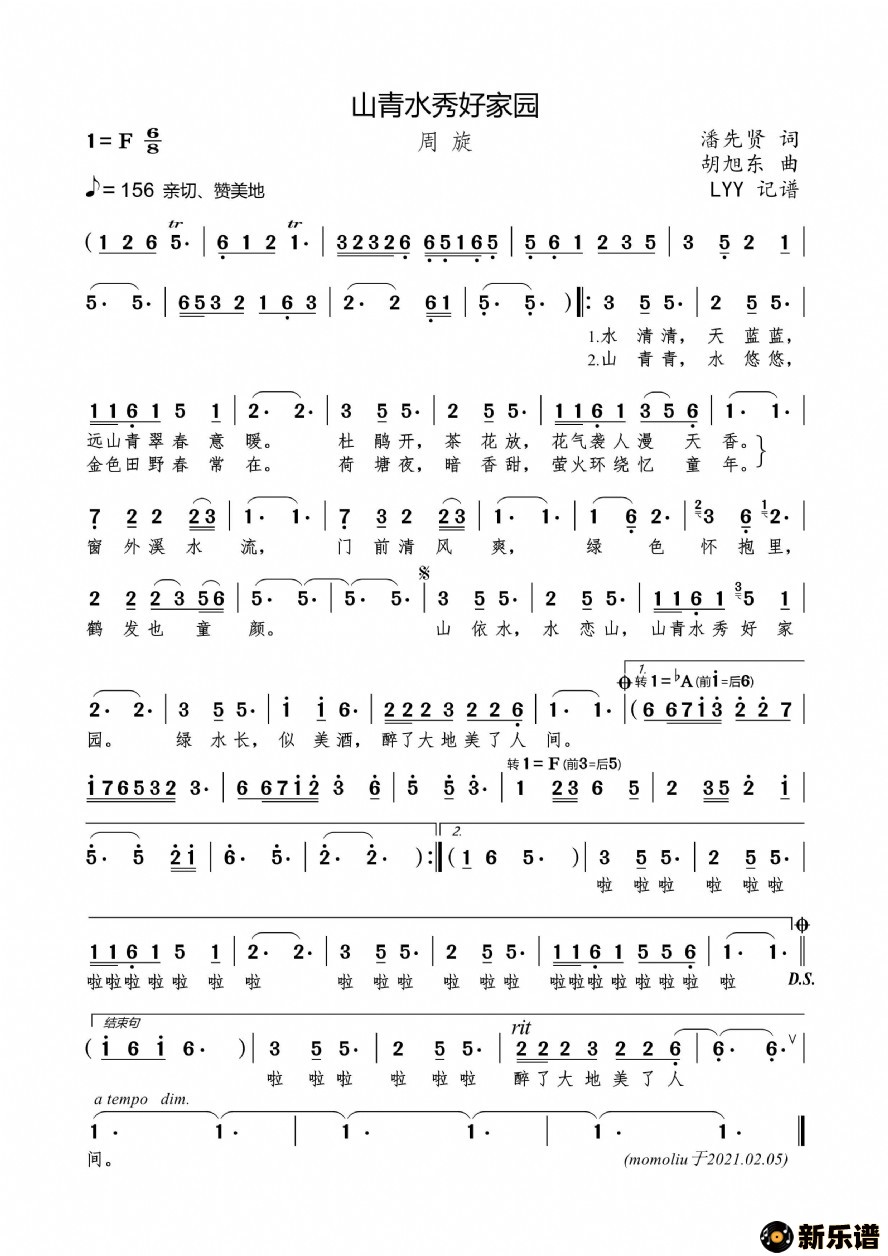 《山青水秀好家园》简谱 周旋-momoliu制谱