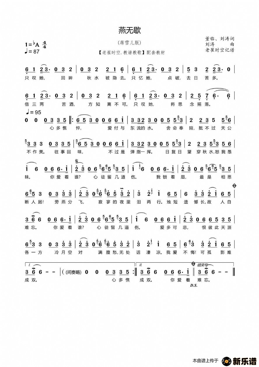 蒋雪儿演唱的燕无歇简谱歌词,燕无歇简谱简谱.