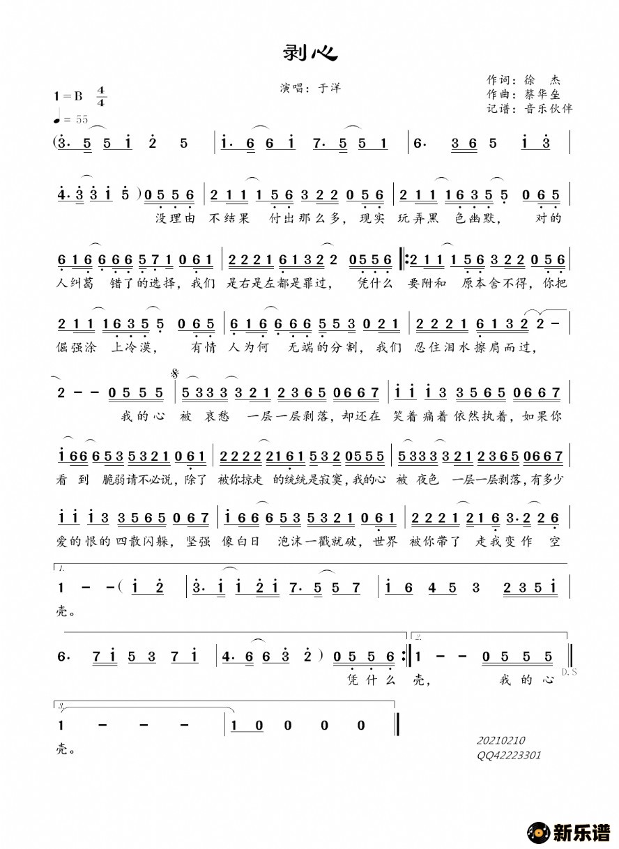 《剥心》简谱 于洋-音乐伙伴制谱