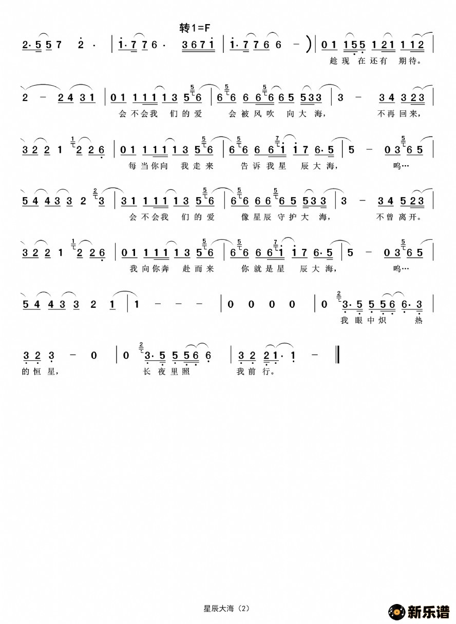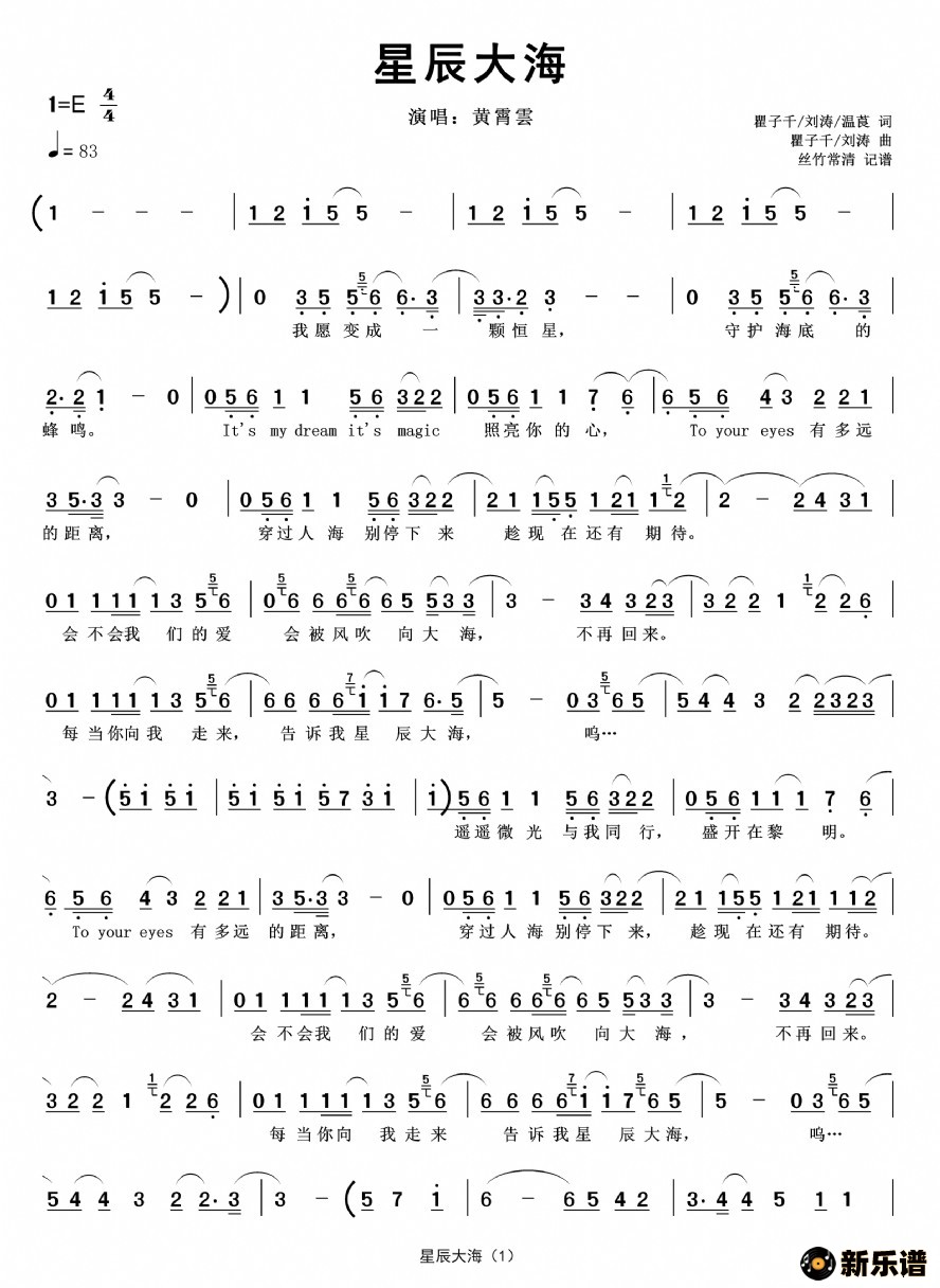 星辰大海(演唱:黄霄雲)黄霄云 黄霄云演唱的星辰大海(演唱:黄霄雲)歌词,星辰大海(演唱:黄霄雲)简谱. 我愿变成一颗恒星守护海底的蜂鸣It’s my dream it's magic照亮你的心To your eyes 有多远的距离穿过人海 别停下来趁现在还有期待会不会我们的爱会被风吹向大海不再回来每当你向我走来告诉我星辰大海遥遥微光 与我同行盛开在黎明To your eyes 有多远的距离穿过人海 别停下来趁现在还有期待会不会我们的爱会被风吹向大海不再回来每当你向我走来告诉我星辰大海趁现在还有期待会不会我们的爱会被风吹向大海不再回来每当你向我走来告诉我星辰大海会不会我们的爱像星辰守护大海不曾离开我向你奔赴而来你就是星辰大海我眼中炽热的恒星长夜里照我前行 此简谱由新乐谱会员 新乐谱 上传
