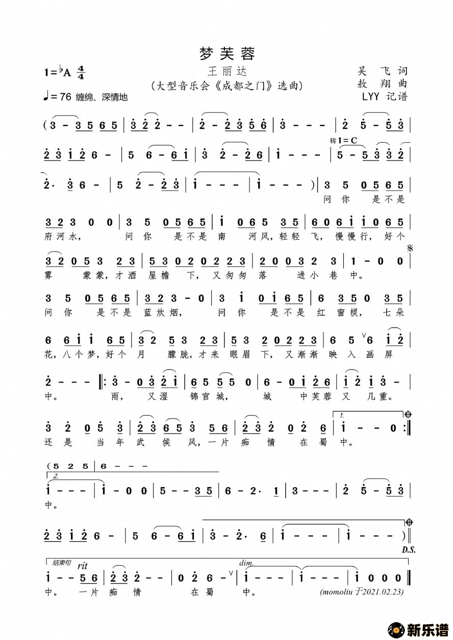 《梦芙蓉》简谱 王丽达-momoliu制谱