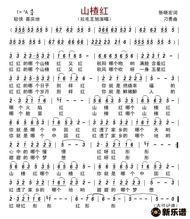 拉毛王旭演唱的山楂红歌词,山楂红简谱.