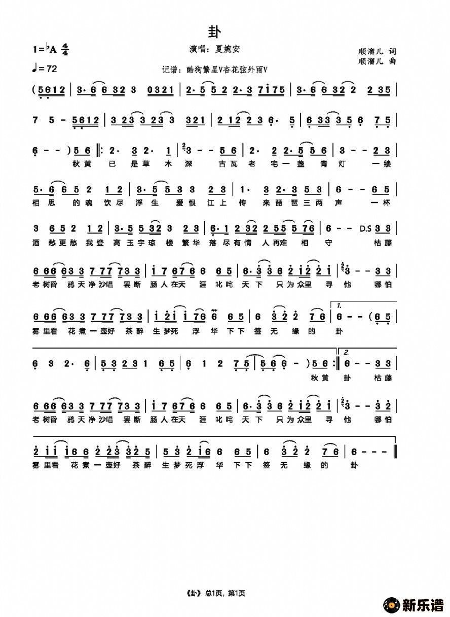 《卦》简谱 夏婉安-杏花弦外雨制谱