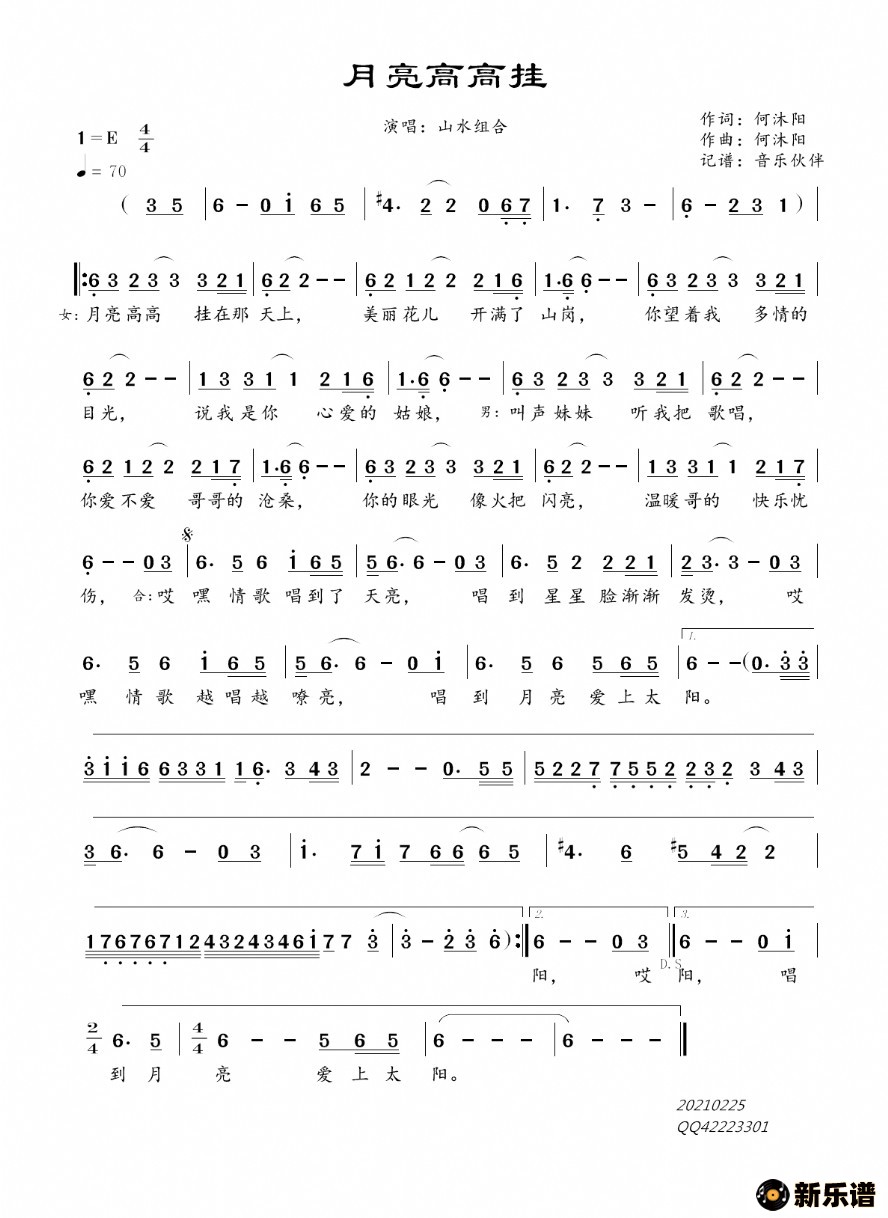 《月亮高高挂》简谱 山水组合-音乐伙伴制谱
