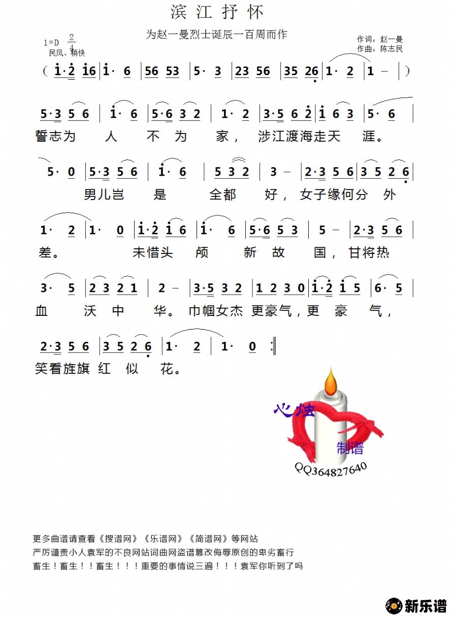 佚名演唱的滨江抒怀歌词,滨江抒怀简谱.