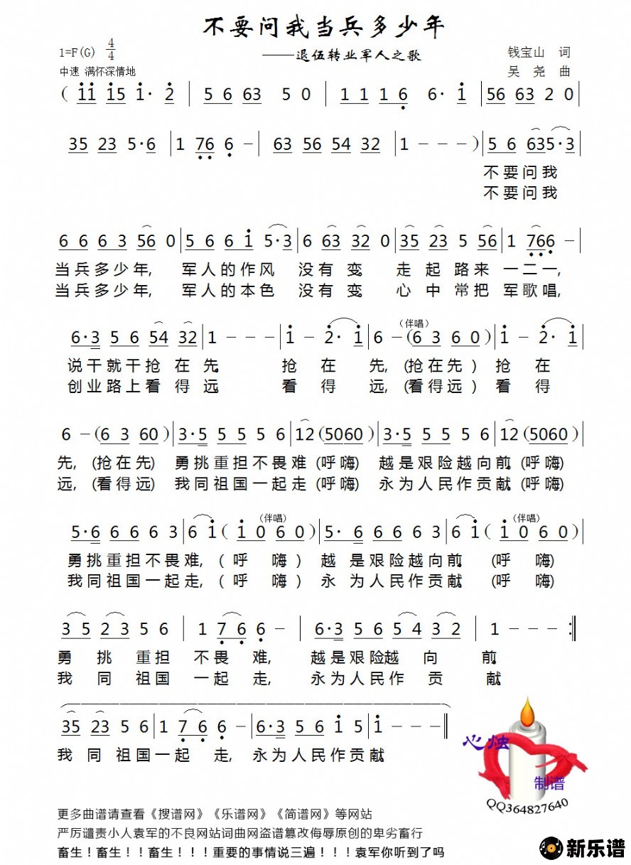 《不要问我当兵多少年》简谱 佚名-心烛制谱