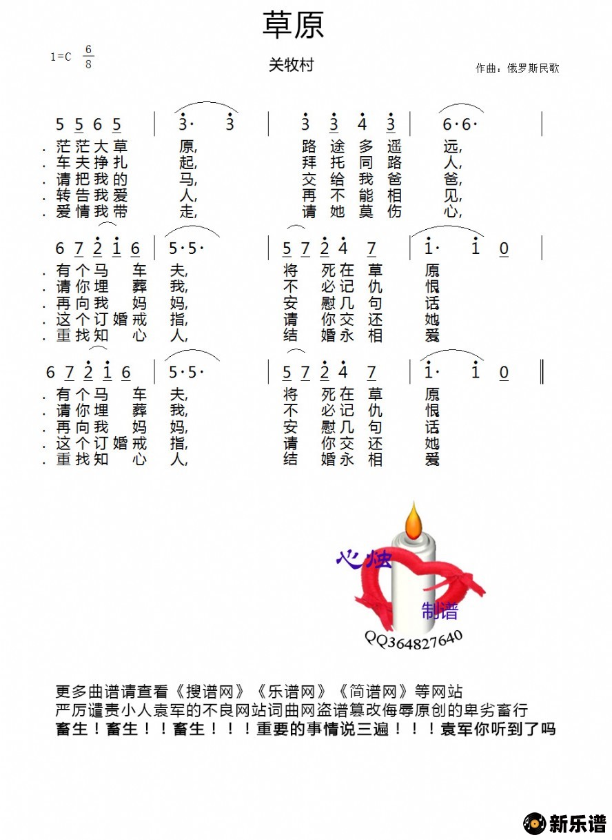 《草原》简谱 关牧村-心烛制谱