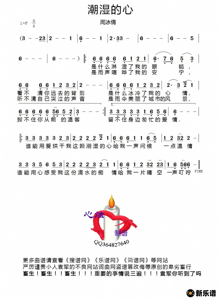 《潮湿的心》简谱 周冰倩-心烛制谱