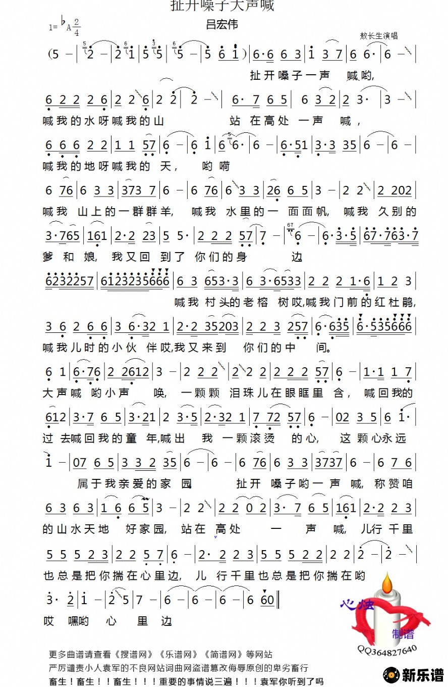 《扯开嗓子一声喊》简谱 吕宏伟-心烛制谱