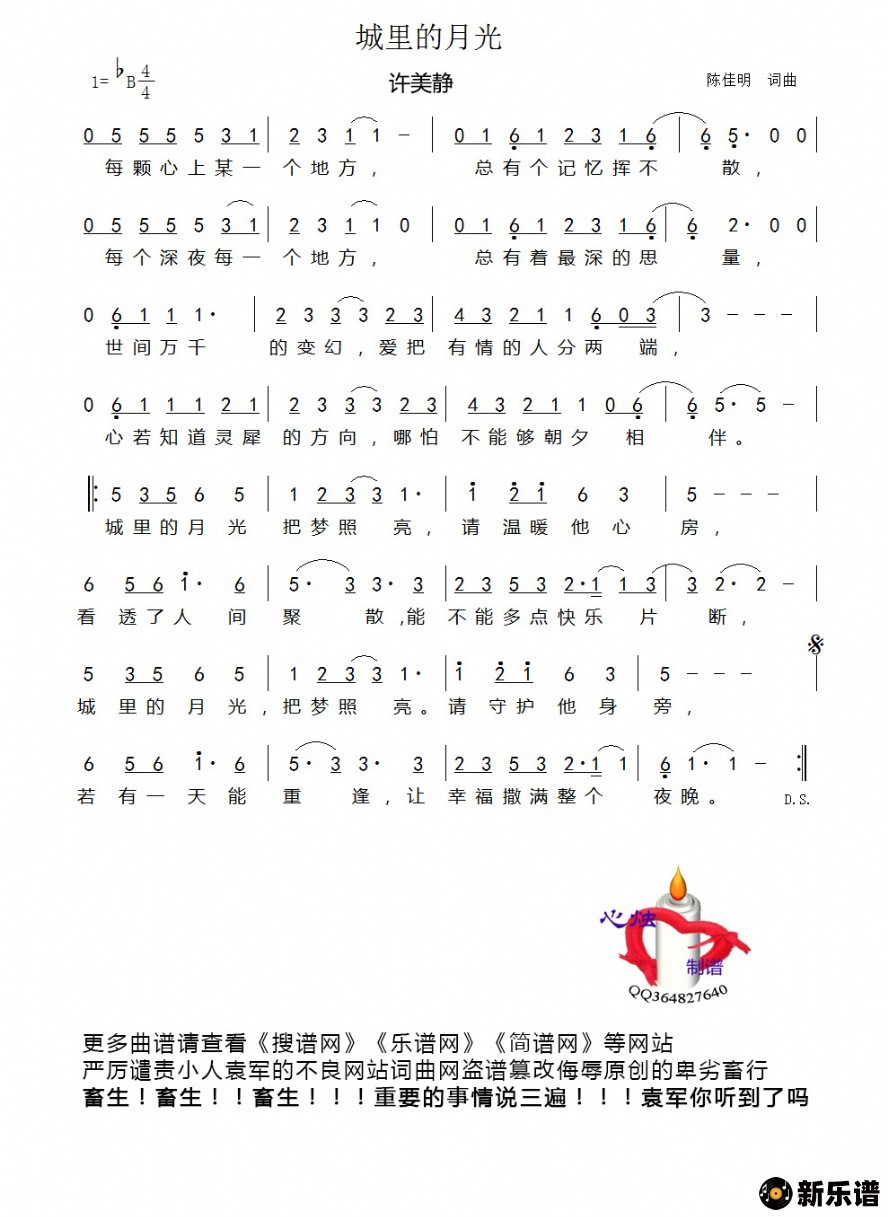 许美静演唱的城里的月光歌词,城里的月光简谱.