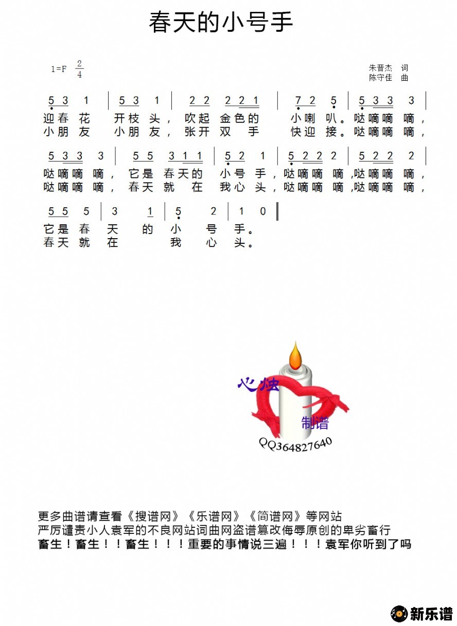 佚名演唱的春天的小号手歌词,春天的小号手简谱.