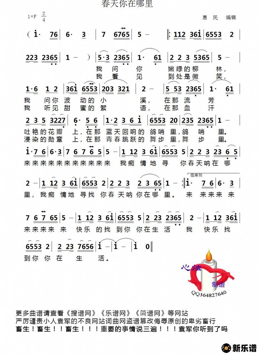 田禾演唱的春天你在哪里歌词,春天你在哪里简谱.