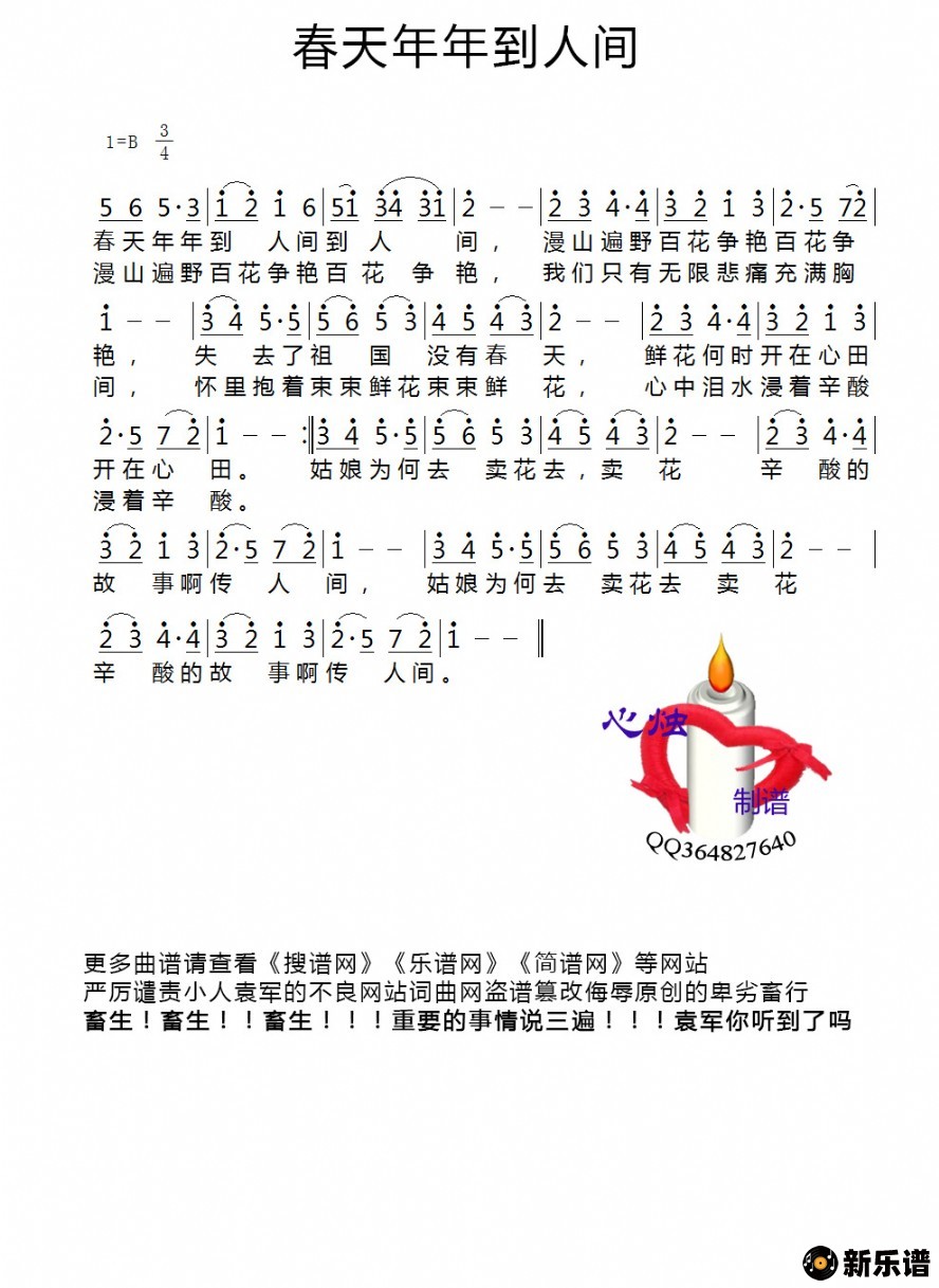 《春天年年到人间》简谱 黑鸭子-心烛制谱
