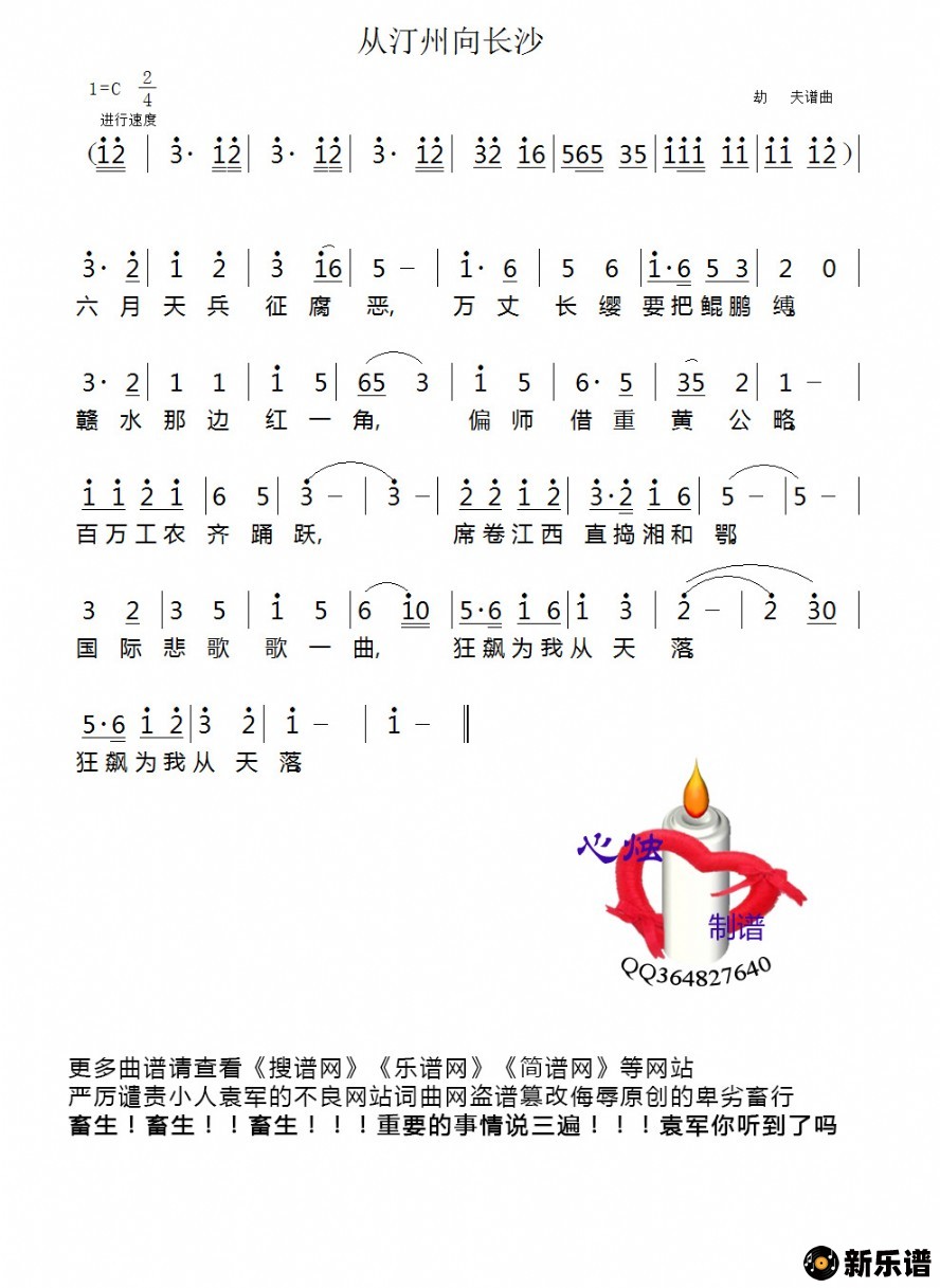 《从汀州向长沙》简谱 佚名-心烛制谱
