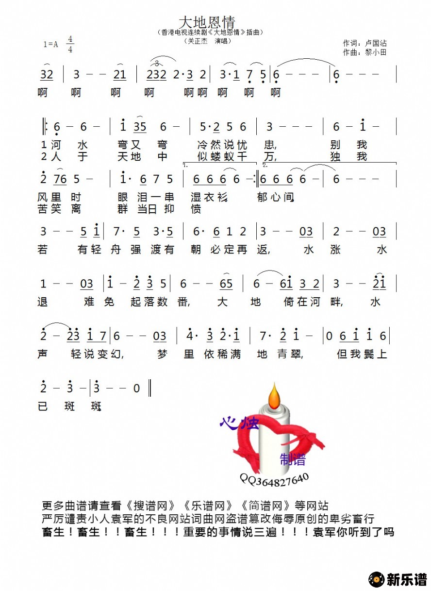《大地恩情》简谱 刘德华-心烛制谱