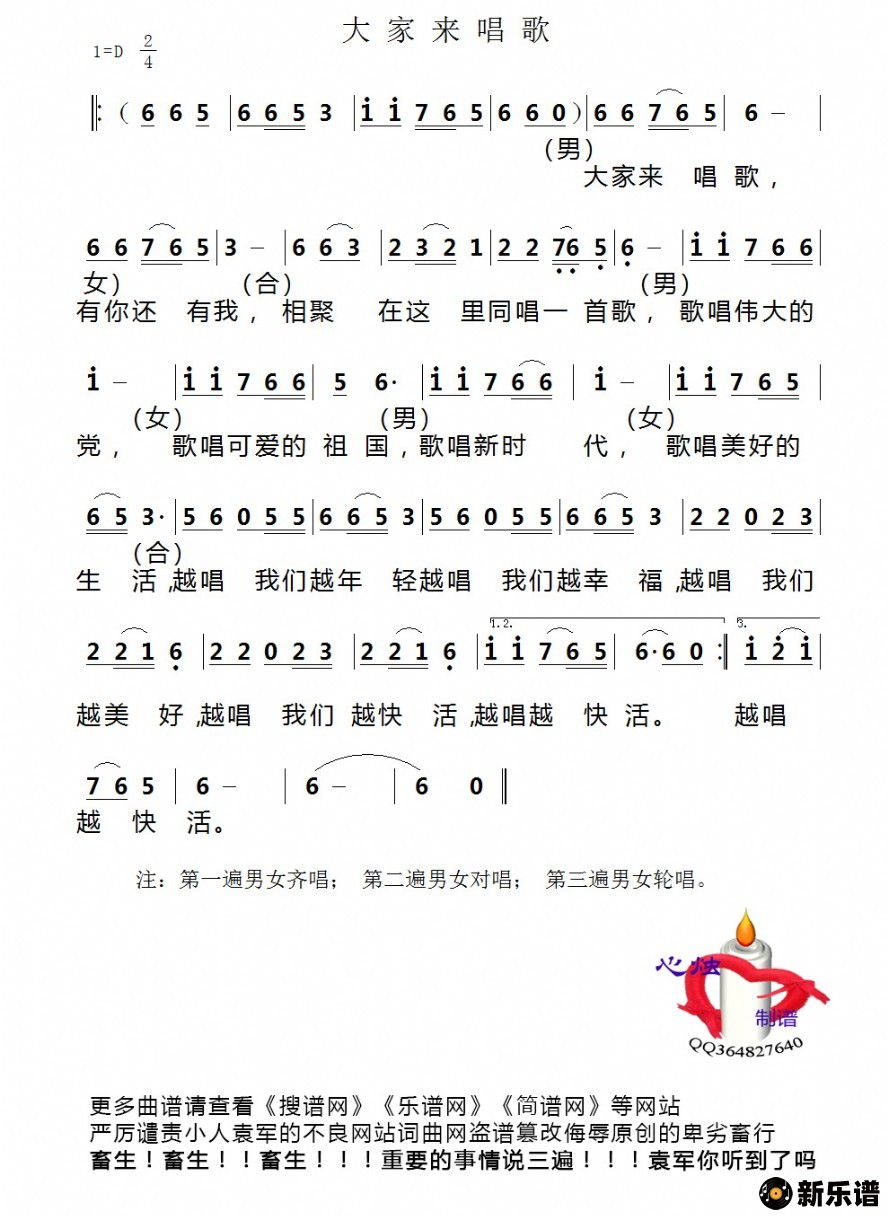 佚名演唱的大家来唱歌歌词,大家来唱歌简谱.