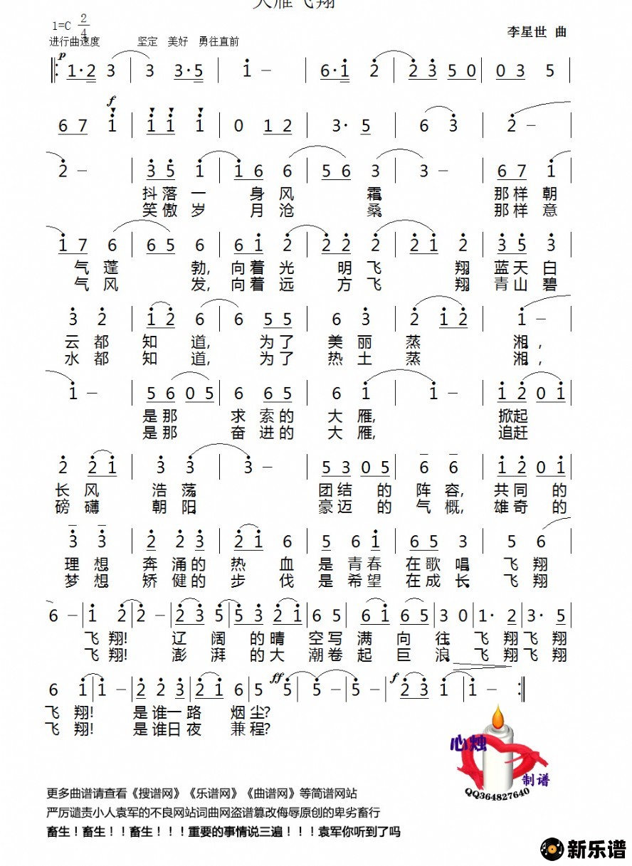 佚名演唱的大雁飞翔歌词,大雁飞翔简谱.