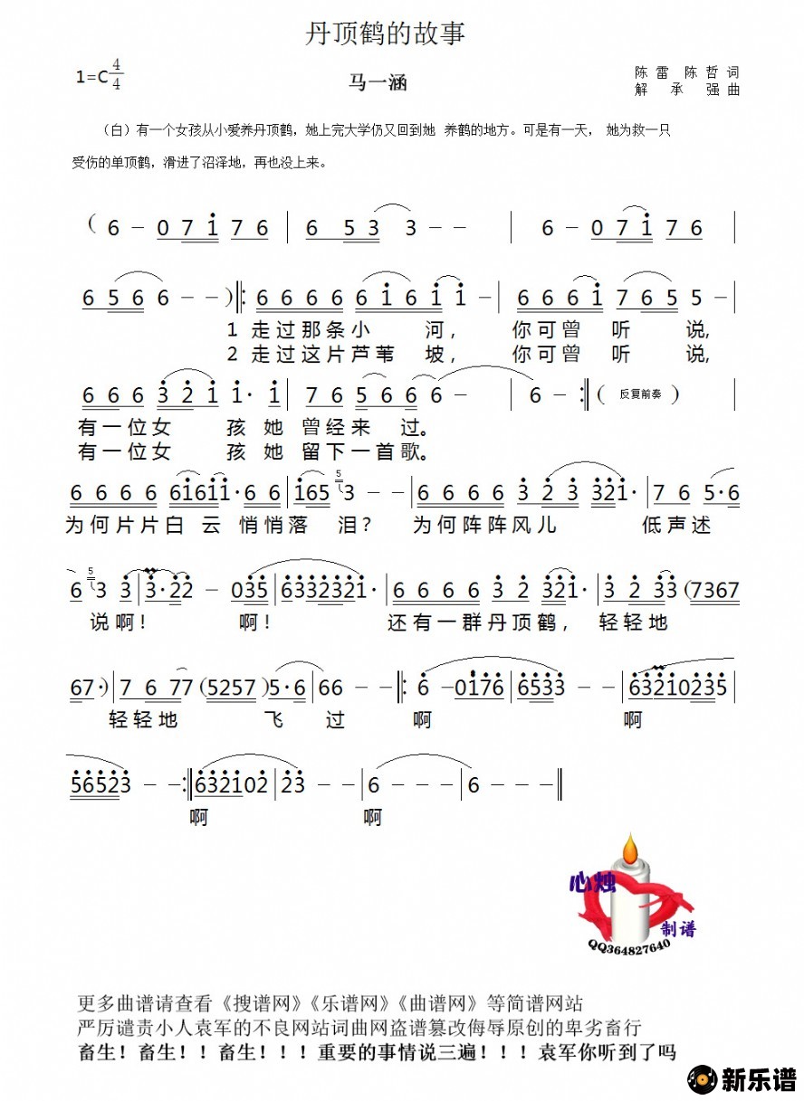 《丹顶鹤的故事》简谱 马一涵-心烛制谱