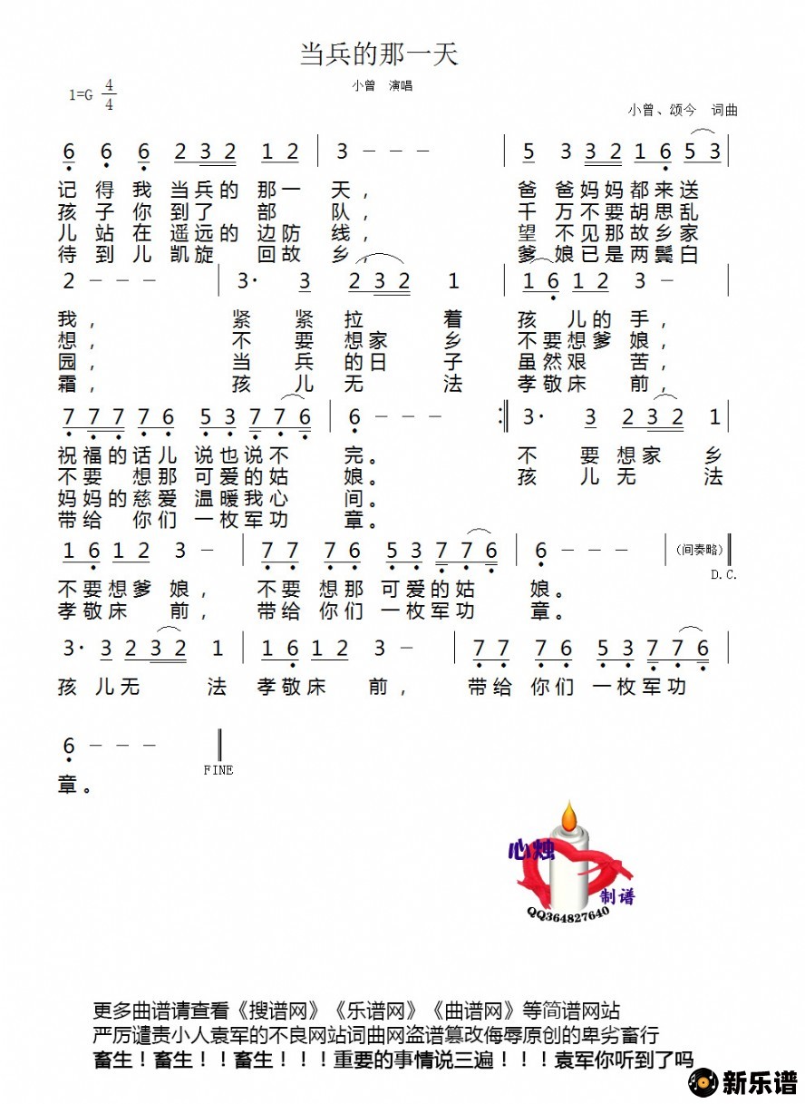 小曾演唱的当兵的那一天歌词,当兵的那一天简谱.