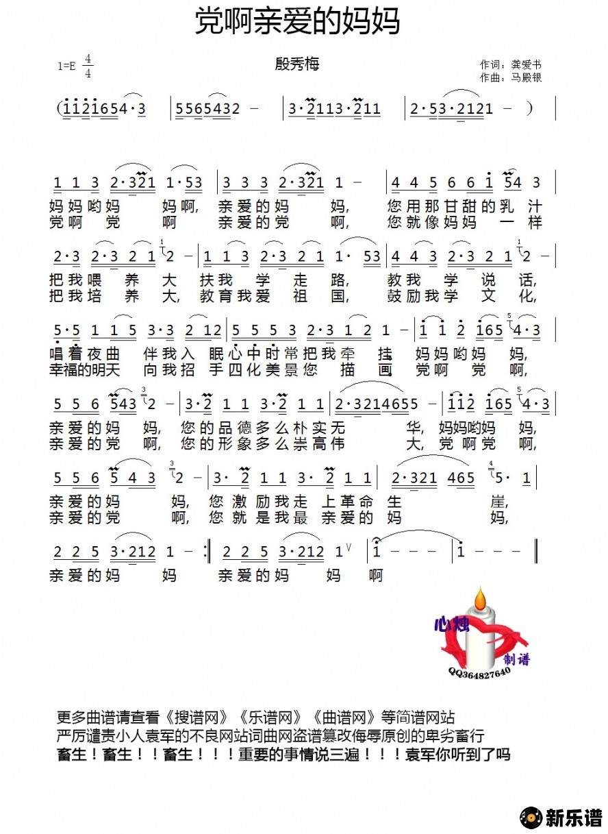 《党啊亲爱的妈妈》简谱 殷秀梅-心烛制谱