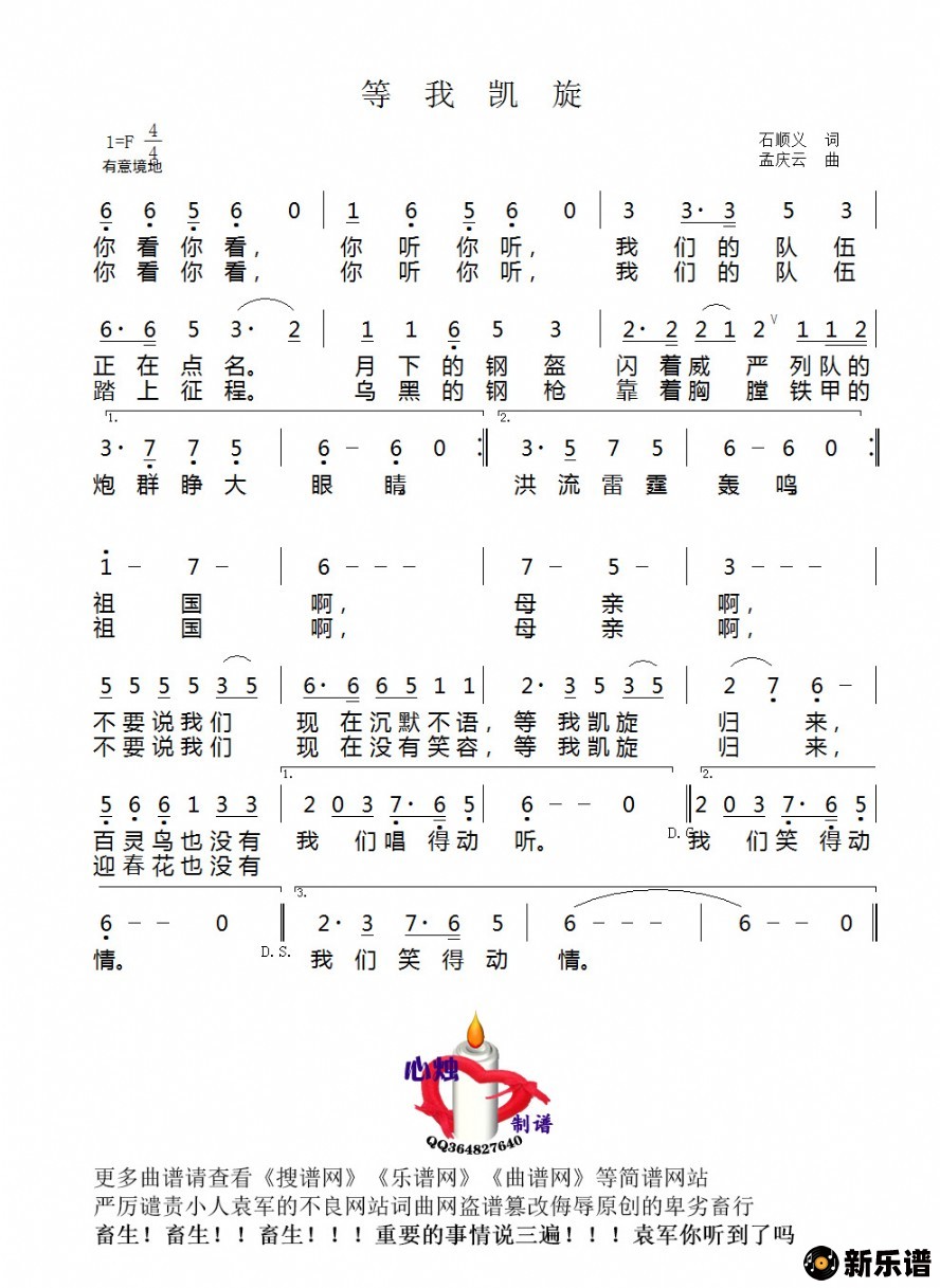 合唱演唱的等我凯旋歌词,等我凯旋简谱.