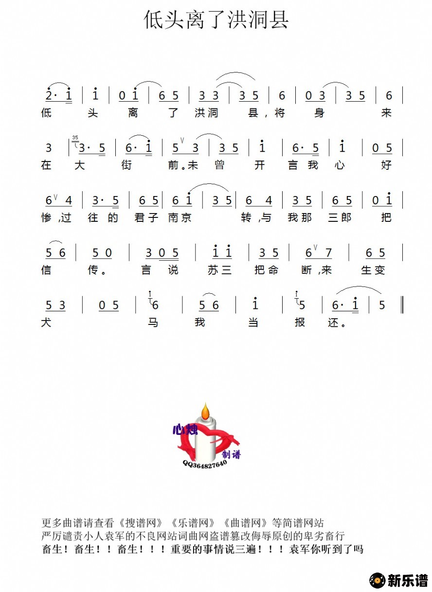 《低头离了洪洞县》简谱 李维康-心烛制谱