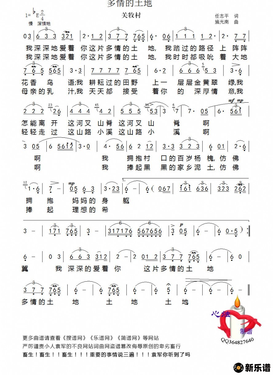 关牧村演唱的多情的土地歌词,多情的土地简谱.