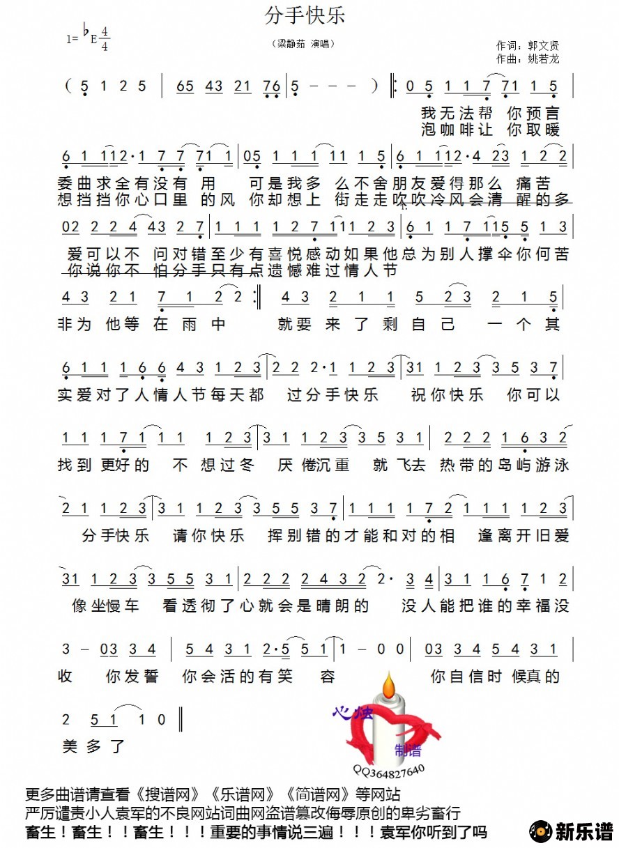 梁静茹演唱的分手快乐歌词,分手快乐简谱.