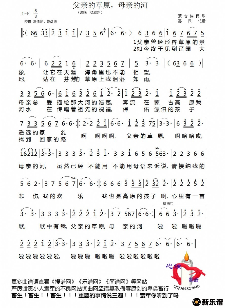 《父亲的草原母亲的河》简谱 德德玛、降央卓玛-心烛制谱