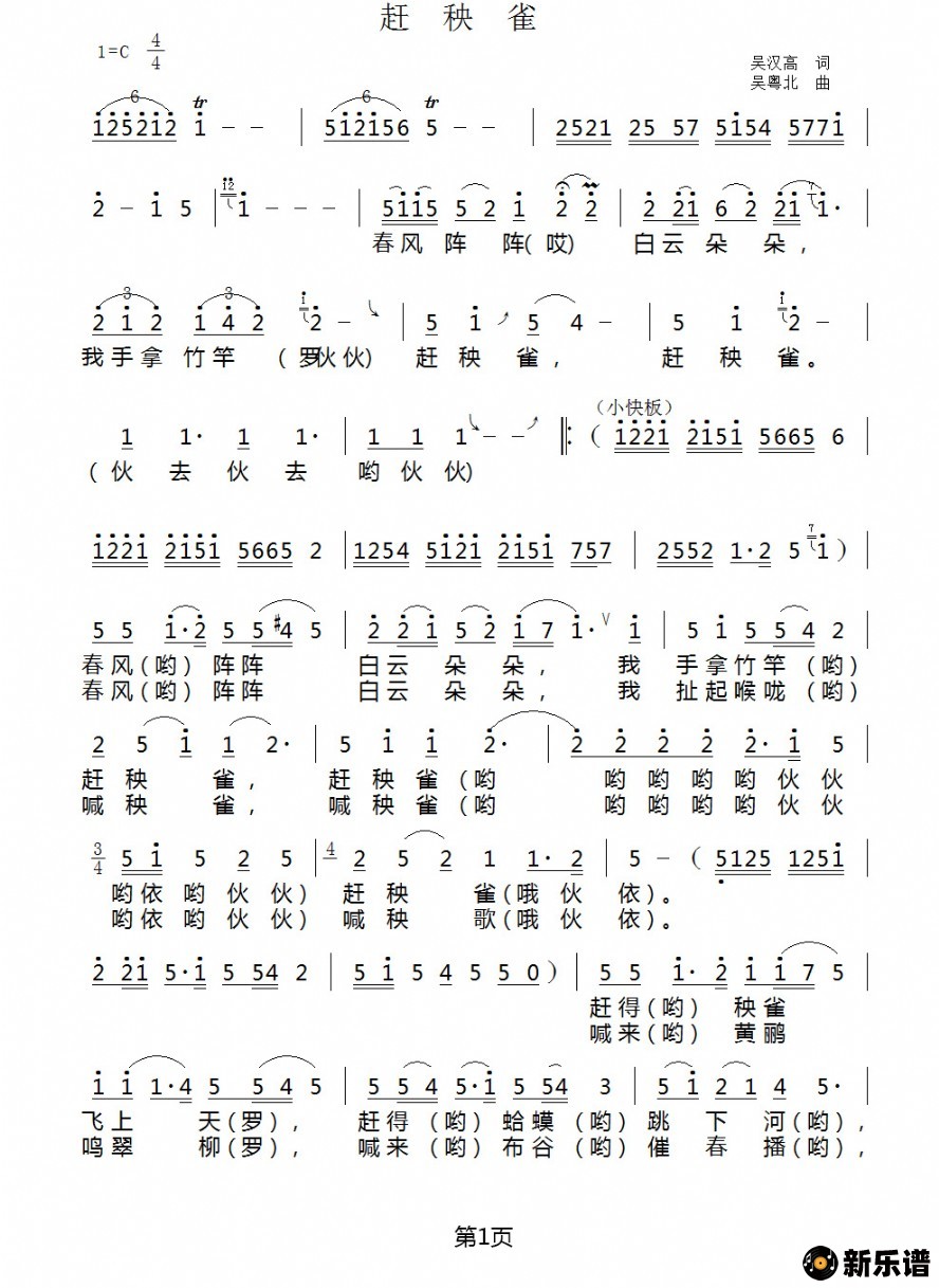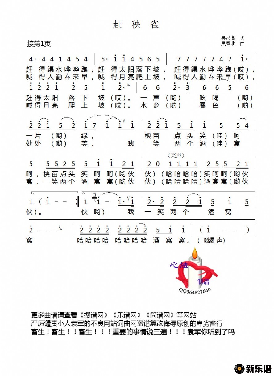 佚名演唱的赶秧雀歌词,赶秧雀简谱.