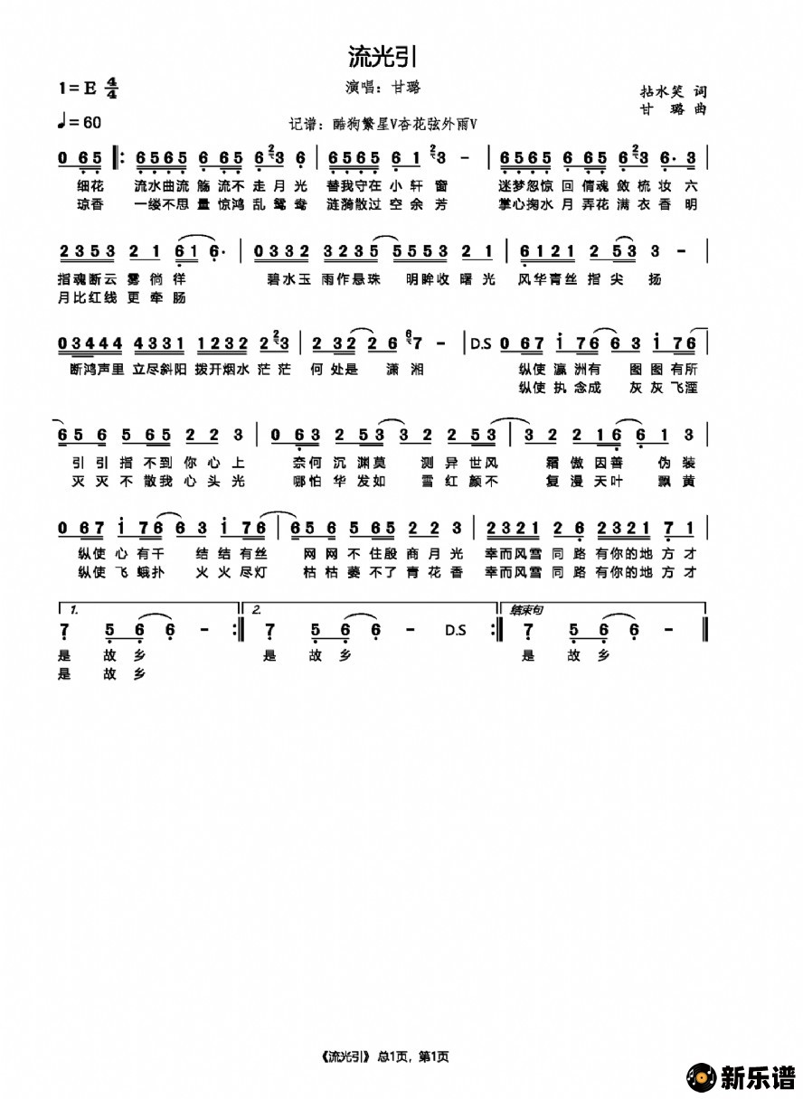 《流光引》简谱 甘璐-杏花弦外雨制谱