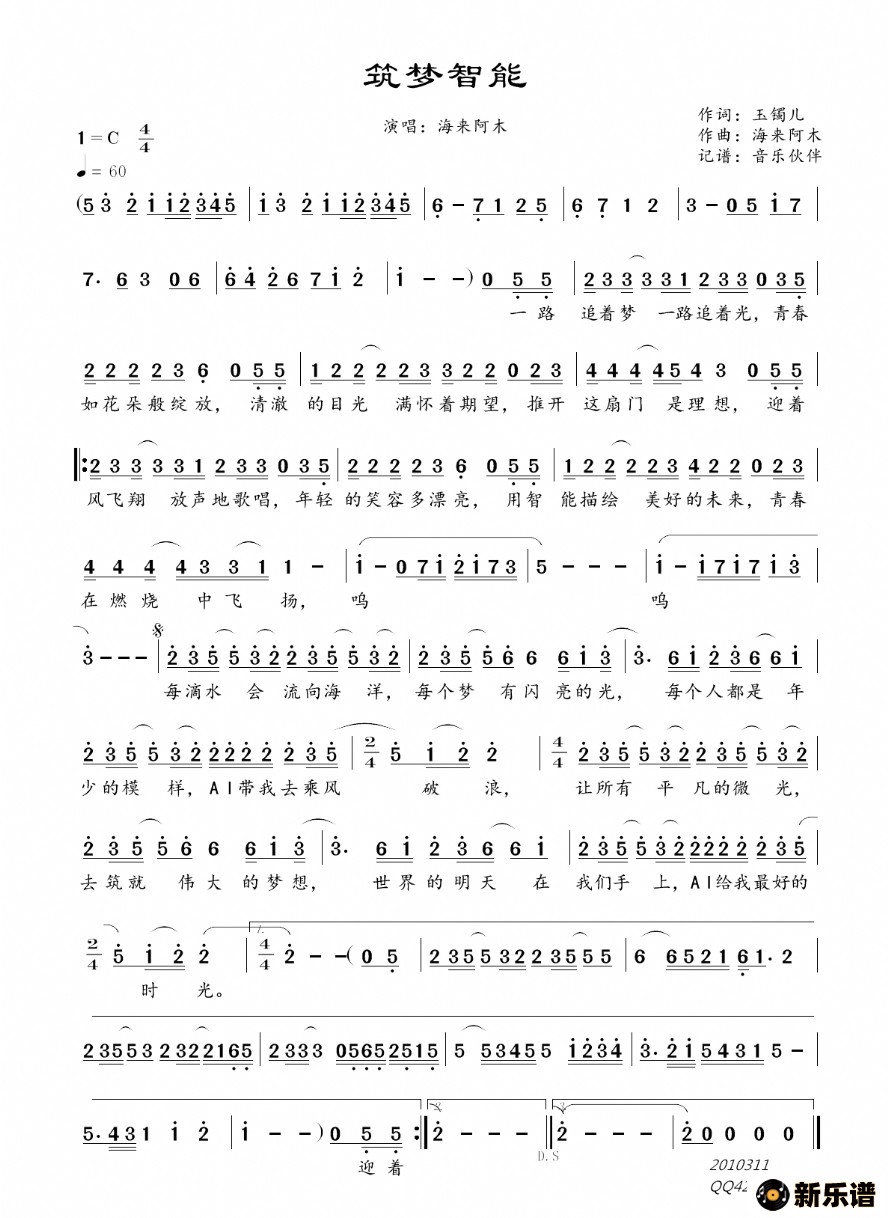 《筑梦智能》简谱 海来阿木-音乐伙伴制谱