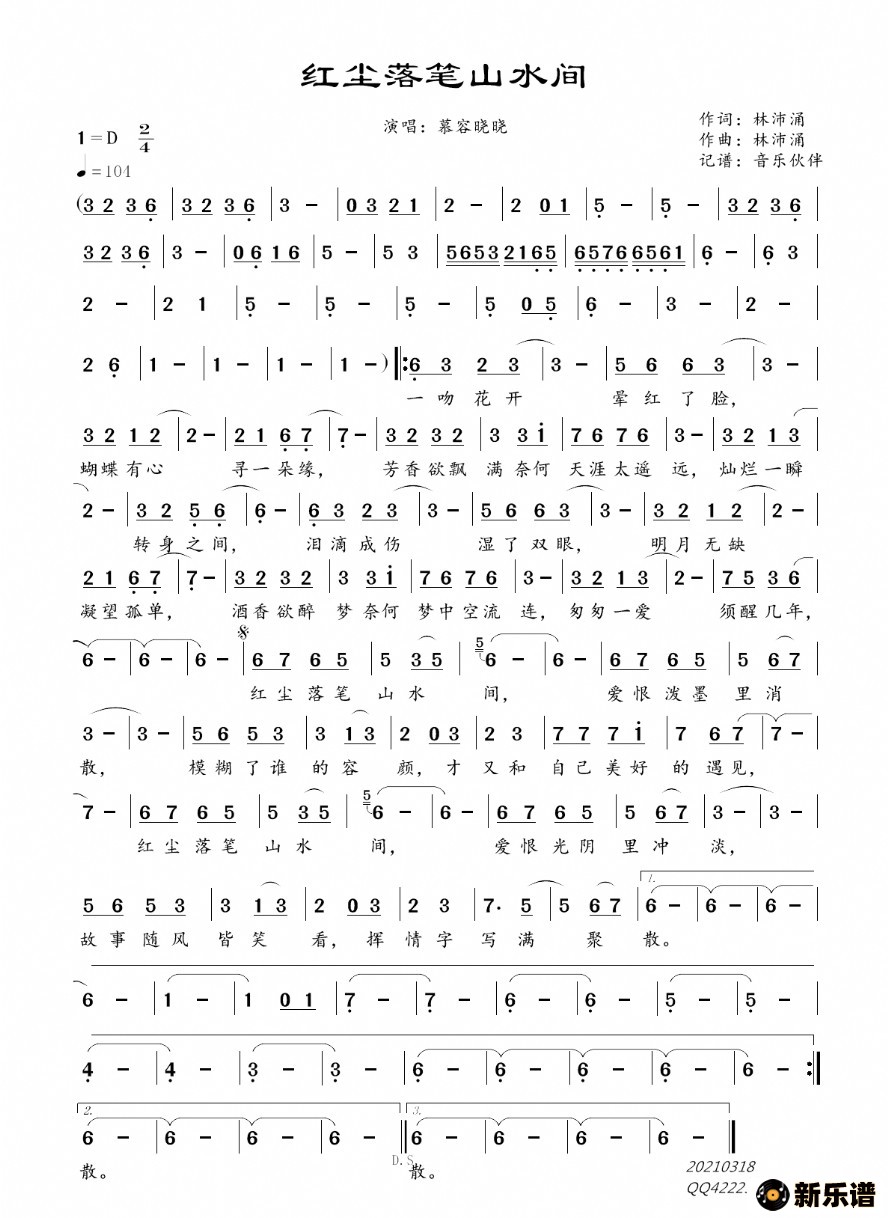 《红尘落笔山水间》简谱 慕容晓晓-音乐伙伴制谱