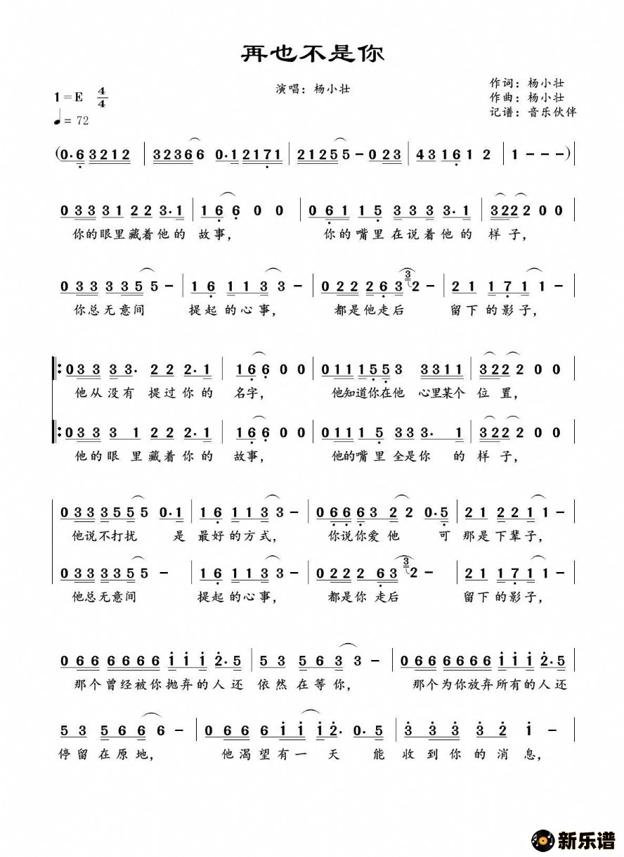 《再也不是你》简谱 杨小壮-音乐伙伴制谱